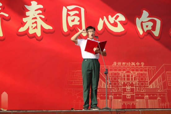 国旗飘扬,校歌嘹亮,仪式在庄严的氛围中正式开始。“以青春之志追随强国之梦,做有格局、有担当的培英人......”校领导在致辞中深情寄语,勉励学子永葆“信、望、爱”的白绿精神,以全运会的拼搏精神,为家国未来奋斗。