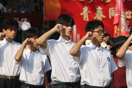 在庄重的“引路时刻”,学校领导向学生代表颁发《青春护照》,象征着青春的新篇章就此开启。“我是中华人民共和国公民,在十八岁成年之际......”全体学子面向国旗,高举右拳,在领誓人陈煜丰同学的带领下进行成人宣誓,誓言响彻云霄。紧接着,便是《青年中国说》的集体朗颂声在运动场上空久久回荡。