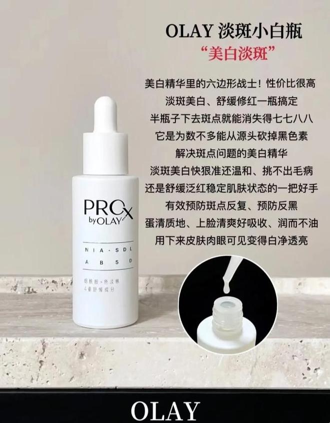 敏感肌也能大胆冲的美白精华,不需要建立耐受,主打成分是双能vc+AA2G针叶樱果,快速的代谢掉黑色素,是像牛奶一样的乳液质地,抹开很水润,我一般是一泵上全脸再点涂在痘印斑点的地方,可以精简一下护肤步骤避免搓泥。