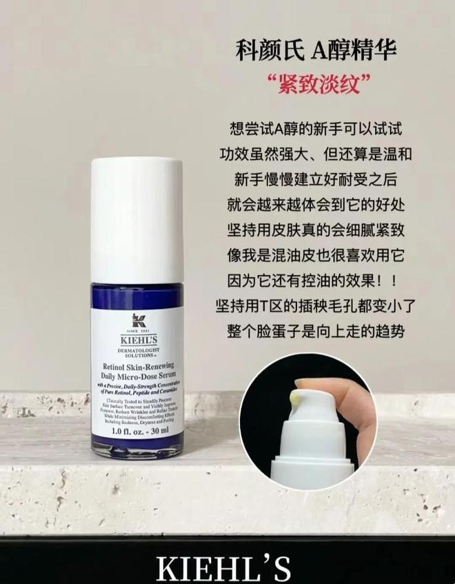 浓度低也很温和,新手入门也容易建立耐受,肤感挺轻薄的,不会黏腻春夏用也挺合适,而且还用到了真空锁鲜的技术保持活性,新手入门A醇不太出错的大牌选择。