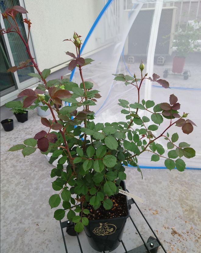 带花苞发货的盆栽,月季可以保留一朵,花苞打开确认品种对版之后,可以剪掉,如果是在信誉好的商家那里选购的,可以直接把花苞剪掉,毕竟是盆栽小苗,是不建议让它过早损耗,养分开花的,否则不利于后续的生长。